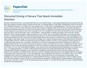 Distracted Driving: A Menace That Needs Immediate Attention. (2024, Sep 17). Retrieved from https://hub.papersowl.com/examples/distracted-driving-a-menace-that-needs-immediate-attention/