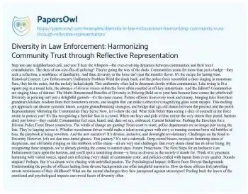 Diversity in Law Enforcement: Harmonizing Community Trust through Reflective Representation. (2023, Sep 14). Retrieved from https://hub.papersowl.com/examples/diversity-in-law-enforcement-harmonizing-community-trust-through-reflective-representation/