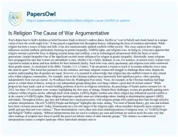 This essay will explore the dual role of religion in both causing conflicts and promoting peace. It will discuss historical and contemporary examples where religion has been a source of conflict, as well as instances where it has been instrumental in peacebuilding and reconciliation efforts. Also at PapersOwl you can find more free essay examples related to Gender.