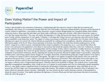 Does Voting Matter? the Power and Impact of Participation. (2025, Mar 28). Retrieved from https://hub.papersowl.com/examples/does-voting-matter-the-power-and-impact-of-participation/