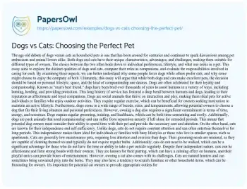 Dogs vs Cats: Choosing the Perfect Pet. (2025, Mar 28). Retrieved from https://hub.papersowl.com/examples/dogs-vs-cats-choosing-the-perfect-pet/