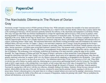 The Narcissistic Dilemma in The Picture of Dorian Gray. (2021, Oct 20). Retrieved from https://hub.papersowl.com/examples/dorian-gray-and-his-inner-narcissism/