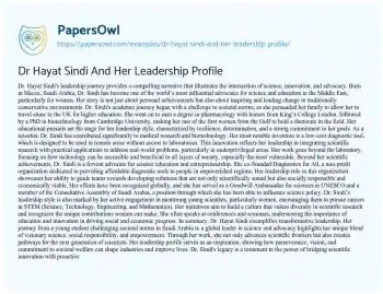 Dr Hayat Sindi And Her Leadership Profile. (2024, May 01). Retrieved from https://hub.papersowl.com/examples/dr-hayat-sindi-and-her-leadership-profile/