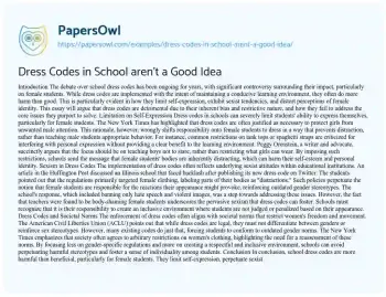 The debate over school dress codes has been ongoing for years, with significant controversy surrounding their impact, particularly on female students. While dress codes are implemented with the intent of maintaining a conducive learning environment, they often do more harm than good. This is particularly evident in how they limit self-expression, exhibit sexist tendencies, and distort perceptions of female identity. This essay will argue that dress codes are detrimental due to their inherent bias and restrictive nature, and how they fail to address the core issues they purport to solve.