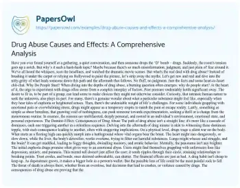 Drug Abuse Causes and Effects: A Comprehensive Analysis. (2023, Sep 06). Retrieved from https://hub.papersowl.com/examples/drug-abuse-causes-and-effects-a-comprehensive-analysis/