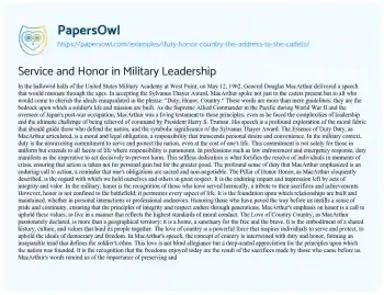 Service and Honor in Military Leadership. (2020, Mar 01). Retrieved from https://hub.papersowl.com/examples/duty-honor-country-the-address-to-the-cadets/