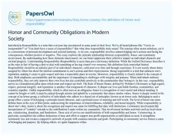 Honor and Community Obligations in Modern Society. (2020, Jan 18). Retrieved from https://hub.papersowl.com/examples/duty-honor-country-the-definition-of-honor-and-responsibility/