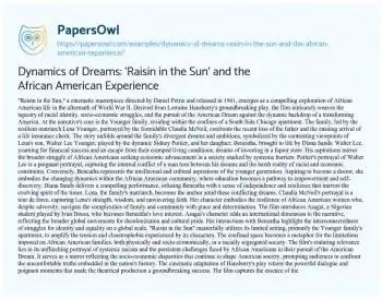 Dynamics of Dreams: 'Raisin in the Sun' and the African American Experience. (2024, Feb 27). Retrieved from https://hub.papersowl.com/examples/dynamics-of-dreams-raisin-in-the-sun-and-the-african-american-experience/