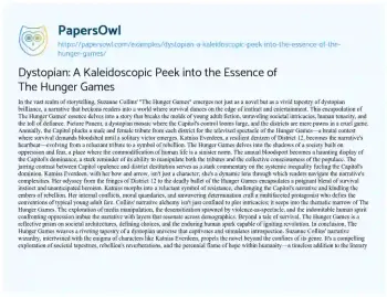 Dystopian: A Kaleidoscopic Peek into the Essence of The Hunger Games. (2023, Dec 01). Retrieved from https://hub.papersowl.com/examples/dystopian-a-kaleidoscopic-peek-into-the-essence-of-the-hunger-games/