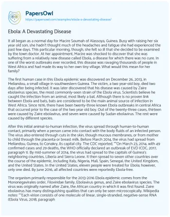 Ebola: A Devastating Disease. (2020, Feb 03). Retrieved from https://hub.papersowl.com/examples/ebola-a-devastating-disease/
