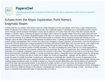 Echoes from the Abyss: Exploration Point Nemo's Enigmatic Realm. (2024, Mar 25). Retrieved from https://hub.papersowl.com/examples/echoes-from-the-abyss-exploration-point-nemos-enigmatic-realm/