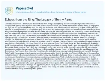 Echoes from the Ring: The Legacy of Benny Paret. (2023, Oct 10). Retrieved from https://hub.papersowl.com/examples/echoes-from-the-ring-the-legacy-of-benny-paret/