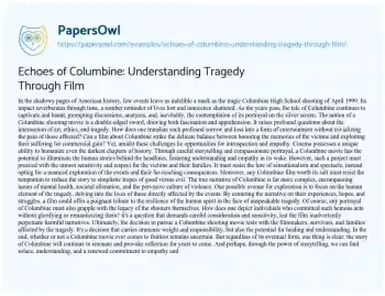 This essay about the potential for a Columbine shooting movie explores the complexities and ethical considerations surrounding the portrayal of such a tragic event on the silver screen. It into the challenges of balancing sensitivity and empathy while avoiding sensationalism, and discusses the importance of honoring the memories of the victims and their families. The essay highlights the need for nuanced storytelling that goes beyond simplistic narratives of good versus evil, focusing on the human element of the tragedy. Ultimately, it emphasizes the responsibility of filmmakers to approach the subject with care and respect, while recognizing the potential for healing and understanding through the power of storytelling.