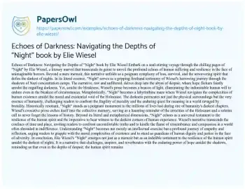 Echoes of Darkness: Navigating the Depths of "Night" book by Elie Wiesel. (2024, Feb 01). Retrieved from https://hub.papersowl.com/examples/echoes-of-darkness-navigating-the-depths-of-night-book-by-elie-wiesel/