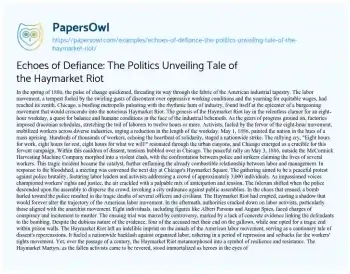 Echoes of Defiance: The Politics Unveiling Tale of the Haymarket Riot. (2024, Jan 26). Retrieved from https://hub.papersowl.com/examples/echoes-of-defiance-the-politics-unveiling-tale-of-the-haymarket-riot/