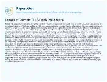 Echoes of Emmett Till: A Fresh Perspective. (2024, Mar 01). Retrieved from https://hub.papersowl.com/examples/echoes-of-emmett-till-a-fresh-perspective/
