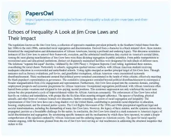 Echoes of Inequality: A Look at Jim Crow Laws and Their Impact. (2024, Mar 25). Retrieved from https://hub.papersowl.com/examples/echoes-of-inequality-a-look-at-jim-crow-laws-and-their-impact/