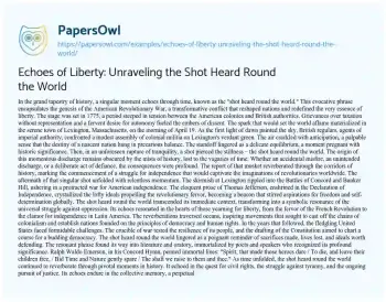 Echoes of Liberty: Unraveling the Shot Heard Round the World. (2024, Feb 01). Retrieved from https://hub.papersowl.com/examples/echoes-of-liberty-unraveling-the-shot-heard-round-the-world/