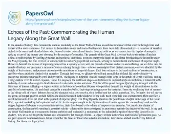 Echoes of the Past: Commemorating the Human Legacy Along the Great Wall. (2024, Jun 01). Retrieved from https://hub.papersowl.com/examples/echoes-of-the-past-commemorating-the-human-legacy-along-the-great-wall/