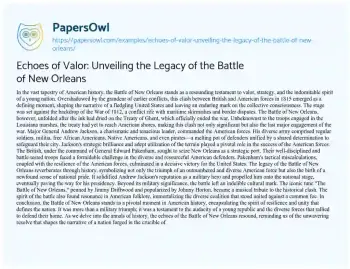 This essay about the historical significance of the Battle of New Orleans, shedding light on the intricacies of this pivotal event. It explores the context, key players, and the lasting impact of the battle on American history. The narrative unfolds through a lens that captures the complexities of war and the resilience of those involved, offering readers a deeper understanding of this crucial moment in time. On PapersOwl, there’s also a selection of free essay templates associated with New Orleans.