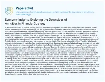 Economy Insights: Exploring the Downsides of Annuities in Financial Strategy. (2023, Nov 24). Retrieved from https://hub.papersowl.com/examples/economy-insights-exploring-the-downsides-of-annuities-in-financial-strategy/