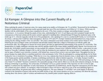 Ed Kemper: A Glimpse into the Current Reality of a Notorious Criminal. (2023, Oct 10). Retrieved from https://hub.papersowl.com/examples/ed-kemper-a-glimpse-into-the-current-reality-of-a-notorious-criminal/