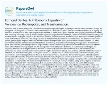 Edmond Dantès: A Philosophy Tapestry of Vengeance, Redemption, and Transformation. (2024, Feb 01). Retrieved from https://hub.papersowl.com/examples/edmond-dantes-a-philosophy-tapestry-of-vengeance-redemption-and-transformation/