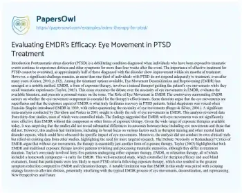 Evaluating EMDR's Efficacy: Eye Movement in PTSD Treatment. (2020, Mar 22). Retrieved from https://hub.papersowl.com/examples/edmr-therapy-for-ptsd/