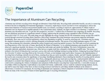 The Importance of Aluminum Can Recycling. (2020, Jan 02). Retrieved from https://hub.papersowl.com/examples/education-and-awareness-of-recycling/