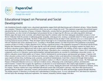 Educational Impact on Personal and Social Development. (2021, May 24). Retrieved from https://hub.papersowl.com/examples/education-is-the-most-powerful-tool-which-can-use-to-change-the-world/