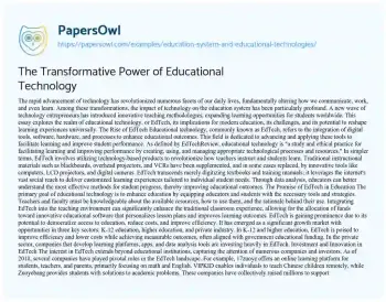 The Transformative Power of Educational Technology. (2022, Jun 20). Retrieved from https://hub.papersowl.com/examples/education-system-and-educational-technologies/