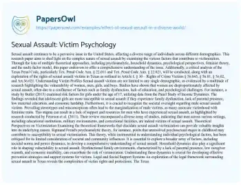 Sexual Assault: Victim Psychology. (2021, Nov 21). Retrieved from https://hub.papersowl.com/examples/effect-of-sexual-assault-in-a-diverse-world/