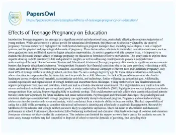 Effects of Teenage Pregnancy on Education. (2024, Dec 27). Retrieved from https://hub.papersowl.com/examples/effects-of-teenage-pregnancy-on-education/