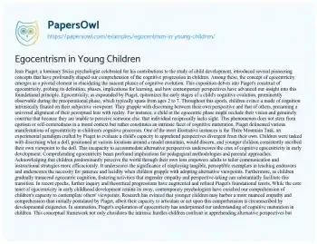 In summation, Piaget's exploration of egocentricity has underpinned our understanding of cognitive maturation in children. This conceptual framework not only elucidates the intrinsic hurdles children confront in apprehending alternative perspectives but also steers educators and parents in cultivating environments conducive to cognitive and empathic maturation. As our insight into child development burgeons, the insights gleaned from Piaget's inquiry into egocentricity persist as a seminal element in shaping efficacious educational methodologies and nurturing individuals endowed with empathy and perspective-awareness.