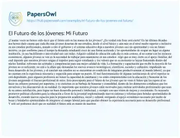 El Futuro de los Jóvenes: Mi Futuro. (2026, Feb 06). Retrieved from https://hub.papersowl.com/examples/el-futuro-de-los-jovenes-mi-futuro/