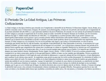 El Periodo De La Edad Antigua, Las Primeras Civilizaciones. (2026, Feb 06). Retrieved from https://hub.papersowl.com/examples/el-periodo-de-la-edad-antigua-las-primeras-civilizaciones/