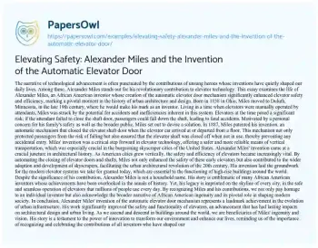 Elevating Safety: Alexander Miles and the Invention of the Automatic Elevator Door. (2024, Mar 25). Retrieved from https://hub.papersowl.com/examples/elevating-safety-alexander-miles-and-the-invention-of-the-automatic-elevator-door/
