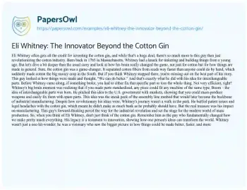 Eli Whitney: The Innovator Beyond the Cotton Gin. (2024, Feb 27). Retrieved from https://hub.papersowl.com/examples/eli-whitney-the-innovator-beyond-the-cotton-gin/