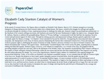 Elizabeth Cady Stanton: Catalyst of Women's Progress. (2024, Mar 12). Retrieved from https://hub.papersowl.com/examples/elizabeth-cady-stanton-catalyst-of-womens-progress/