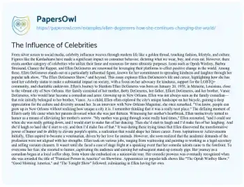 The Influence of Celebrities. (2022, Jun 23). Retrieved from https://hub.papersowl.com/examples/ellen-degeneres-how-she-continues-changing-the-world/