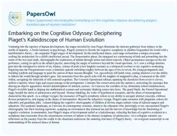 Embarking on the Cognitive Odyssey: Deciphering Piaget's Kaleidoscope of Human Evolution. (2024, Jan 26). Retrieved from https://hub.papersowl.com/examples/embarking-on-the-cognitive-odyssey-deciphering-piagets-kaleidoscope-of-human-evolution/