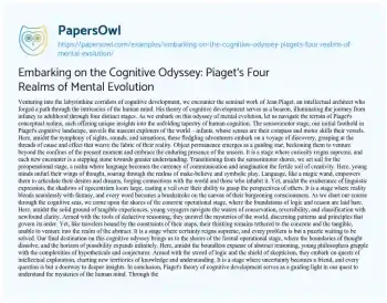 Embarking on the Cognitive Odyssey: Piaget's Four Realms of Mental Evolution. (2024, Jun 01). Retrieved from https://hub.papersowl.com/examples/embarking-on-the-cognitive-odyssey-piagets-four-realms-of-mental-evolution/