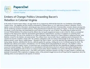 Embers of Change: Politics Unraveling Bacon's Rebellion in Colonial Virginia. (2024, Jan 09). Retrieved from https://hub.papersowl.com/examples/embers-of-change-politics-unraveling-bacons-rebellion-in-colonial-virginia/
