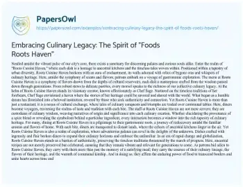 Embracing Culinary Legacy: The Spirit of "Foods Roots Haven". (2024, Feb 27). Retrieved from https://hub.papersowl.com/examples/embracing-culinary-legacy-the-spirit-of-foods-roots-haven/