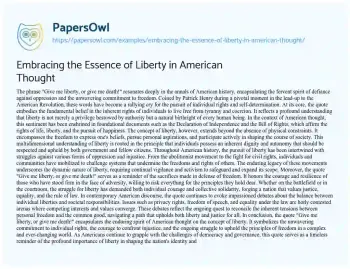Embracing the Essence of Liberty in American Thought. (2024, Jun 17). Retrieved from https://hub.papersowl.com/examples/embracing-the-essence-of-liberty-in-american-thought/