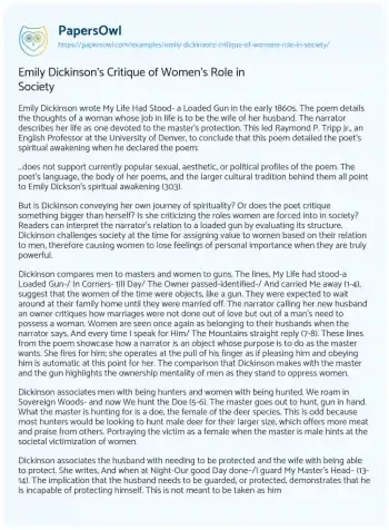 Emily Dickinson's Critique of Women's Role in Society. (2023, Mar 31). Retrieved from https://hub.papersowl.com/examples/emily-dickinsons-critique-of-womens-role-in-society/