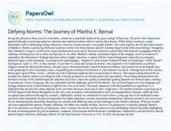 Defying Norms: The Journey of Martha E. Bernal. (2021, Apr 29). Retrieved from https://hub.papersowl.com/examples/eminent-women-in-psychology-by-martha-e-bernal/