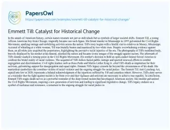 Emmett Till: Catalyst for Historical Change. (2024, Mar 12). Retrieved from https://hub.papersowl.com/examples/emmett-till-catalyst-for-historical-change/