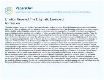 Emotion Unveiled: The Enigmatic Essence of Admiration. (2024, Feb 27). Retrieved from https://hub.papersowl.com/examples/emotion-unveiled-the-enigmatic-essence-of-admiration/