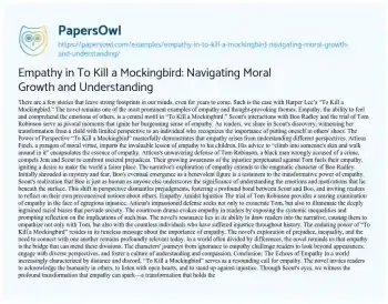 Empathy in To Kill a Mockingbird: Navigating Moral Growth and Understanding. (2023, Sep 14). Retrieved from https://hub.papersowl.com/examples/empathy-in-to-kill-a-mockingbird-navigating-moral-growth-and-understanding/